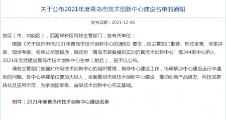 青島正亞機(jī)械入選青島市2021年度技術(shù)創(chuàng)新中心