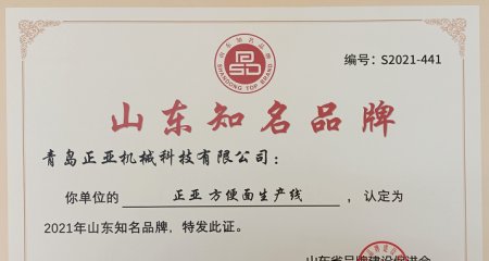 青島正亞機(jī)械科技有限公司的“CA ZHENGYA”方便面生產(chǎn)線獲評(píng)“2021年度山東優(yōu)質(zhì)品牌”。