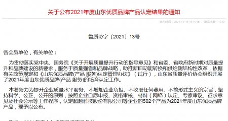 熱烈祝賀正亞機(jī)械獲評(píng)2021年度山東優(yōu)質(zhì)品牌